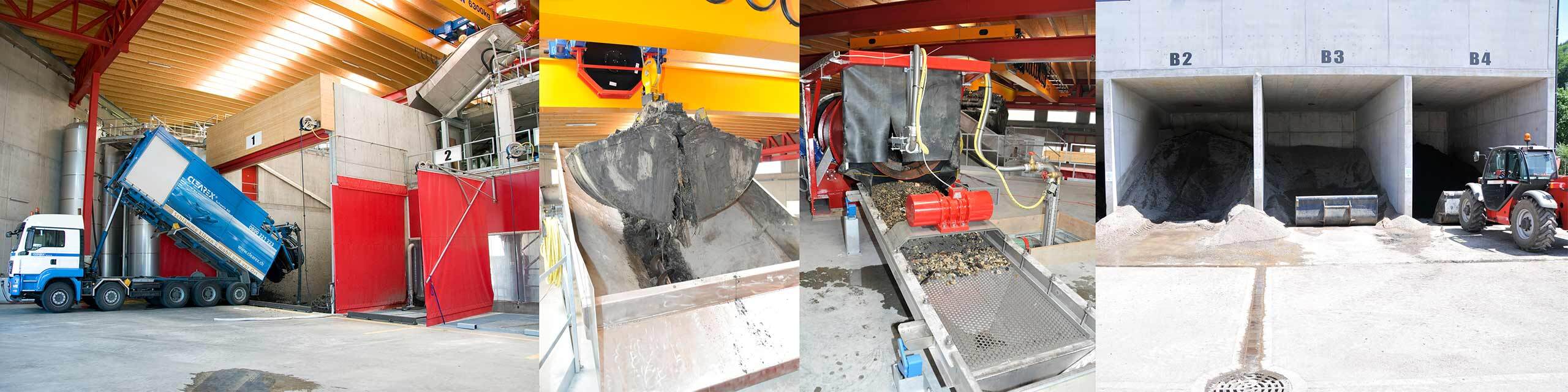 Ob organische Laubfraktion aus dem Torpedowäscher oder entwässertes und entschlammtes Altöl aus dem Sammeltank, das Betriebskonzept der EVAG setzt auf eine sinnvolle Wiederverwertung der angelieferten Abfälle.So wird z.B. das mithilfe einer Schneckenpresse das entwässerte und gepresste Laub zur Energiegewinnung in einer Verbrennungsanlage weiter verarbeitet. Aufbereiteter Sand Splitt und Kies werden auf dem Werksgelände der Marquis-Gruppe in separaten Boxen für Abnehmerbetriebe gelagert und für Recyclingbeton wieder verwertet. Altöl gelangt via Strassentransport in Altölaufbereitungsanlagen als Brennstoff.